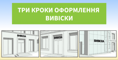 1. Спершу ознайомтеся з вимогами до оформлення вашої майбутньої вивіски. Ілюстрований буклет з вимогами. Порядок і детальні вимоги щодо оформлення вивісок, ви можете знайти за посиланням.