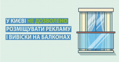 Деякі власники закладів полюбляють розміщувати на балконах мешканців свою рекламу. Особливо це актуально для житлових будинків, у яких не передбачені комерційні поверхи. Балкон - не місце для незаконної реклами. Згідно правил у Києві не дозволено розміщувати вивіски та рекламні засоби на балконах житлових, офісних та інших будівель.
