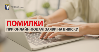 Управління з питань реклами розповіло про технічні помилки, які допускають заявники, при подачі документів на оформлення вивіски через онлайн-портал. Вони можуть стати причиною відмови у розміщені конструкції. Нижче наведено приклади найпоширеніших помилок.